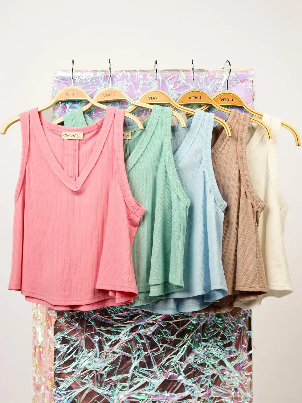 Women Casual Color Block V-Neck Waffle Knit Tank Top