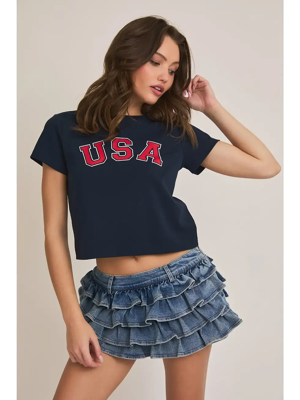 "USA" Graphic Short Sleeve Crew Neck Baby Tee